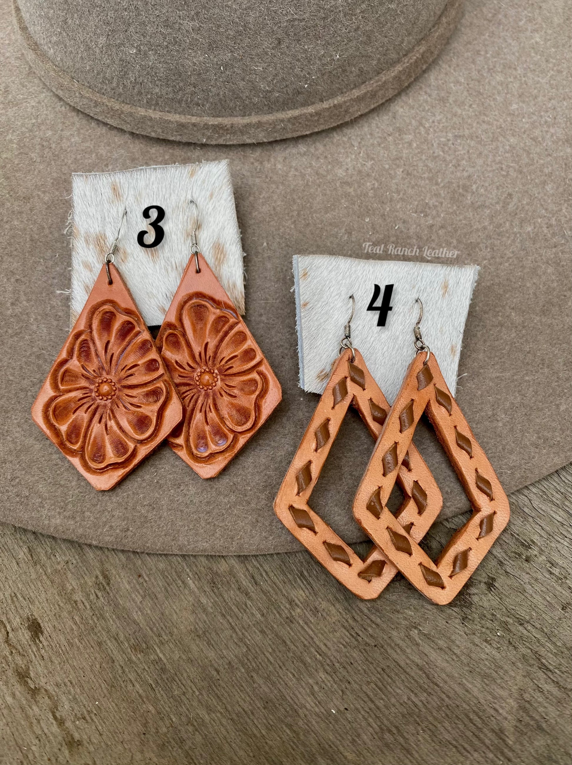 Tooled leather earrings