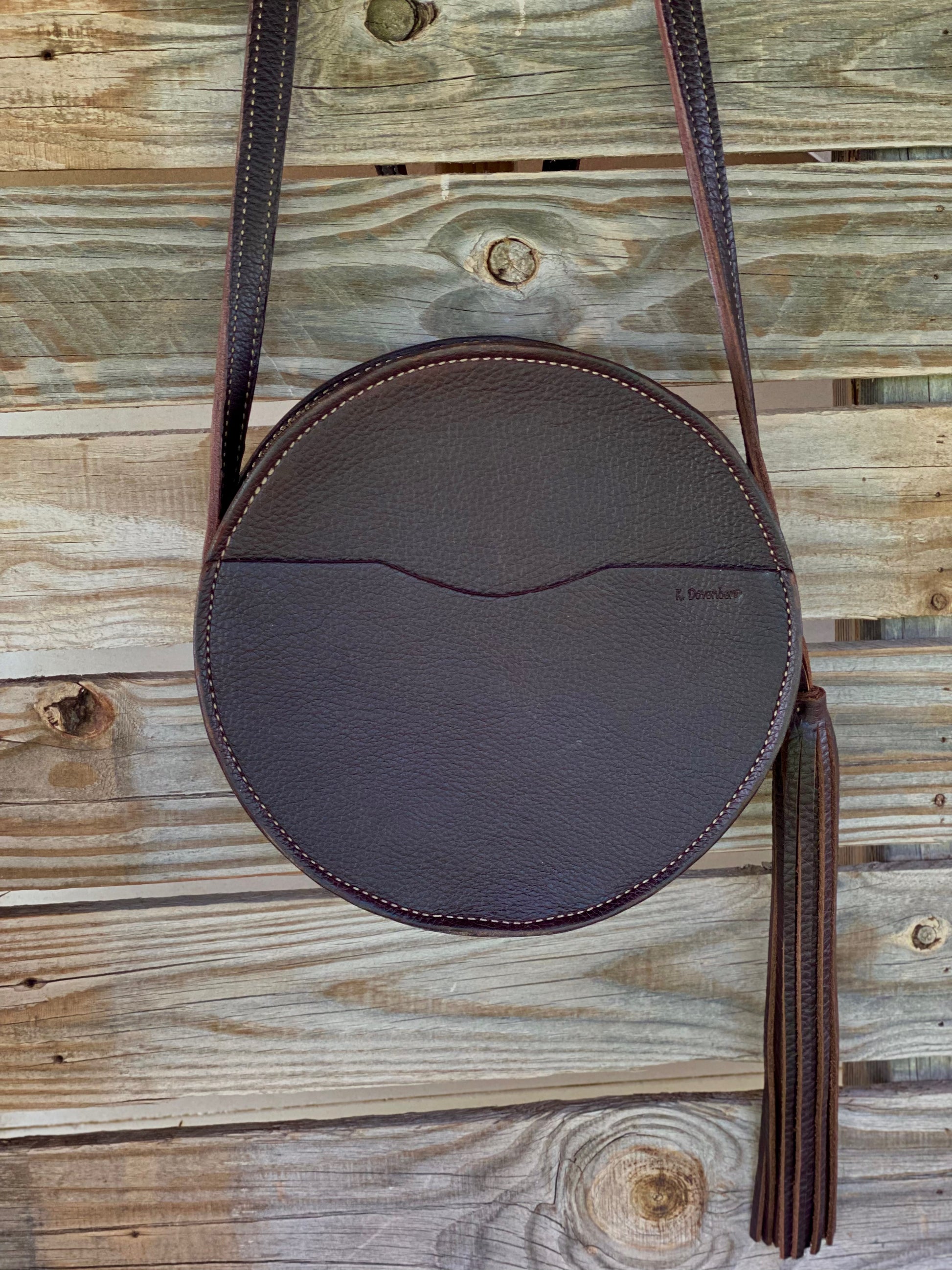 Purse is 9 inches in diameter and 3 inches wide. The cross body strap is adjustable!